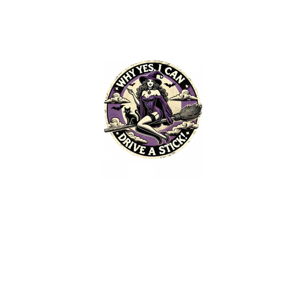Witch with Broomstick and Cat Retro Halloween Art