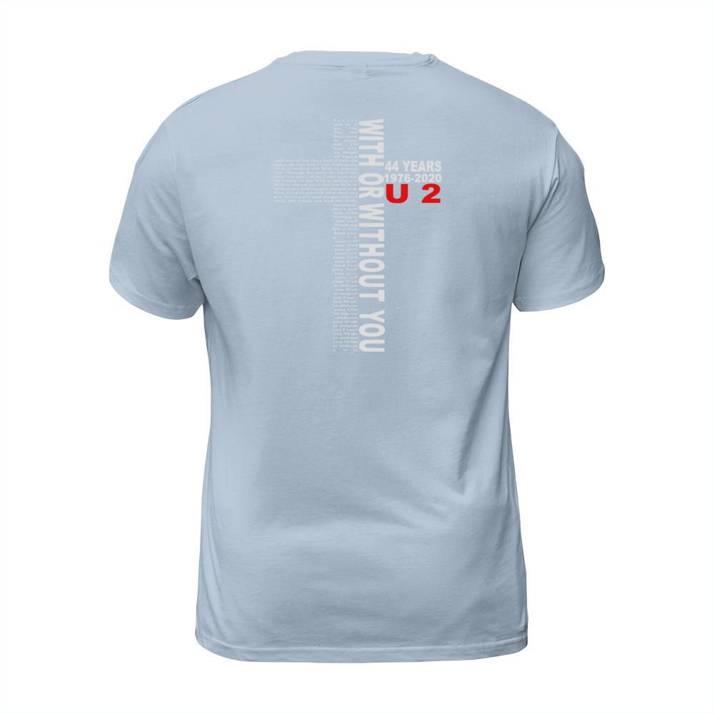 Shop With Or Without You 44 Years 1976-2020 U2 shirt T-Shirt Unisex custom made just for you. Available on many styles, sizes, and colors.