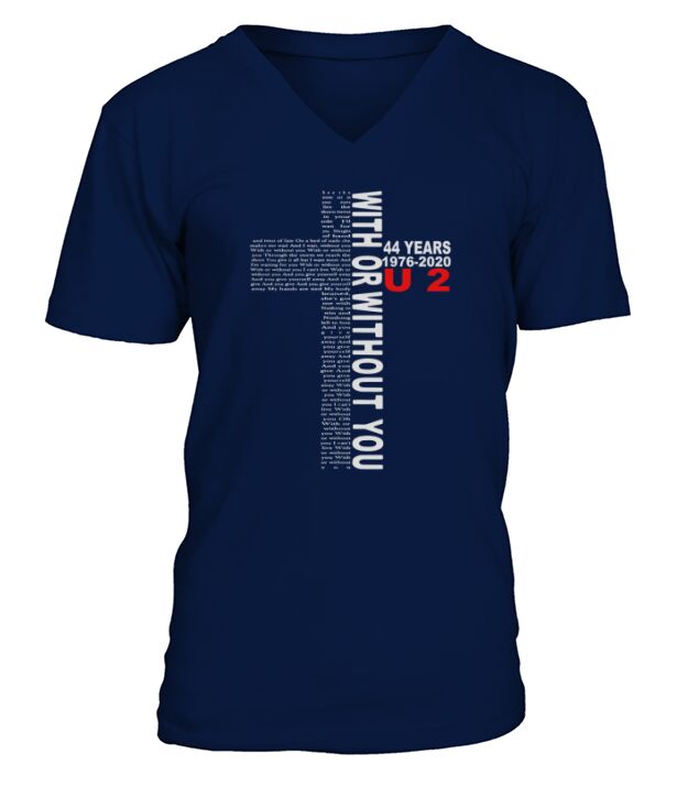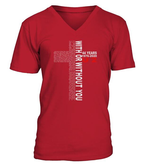 Shop With Or Without You 44 Years 1976-2020 U2 shirt V-Neck T-shirt custom made just for you. Available on many styles, sizes, and colors.
