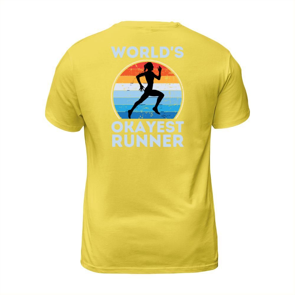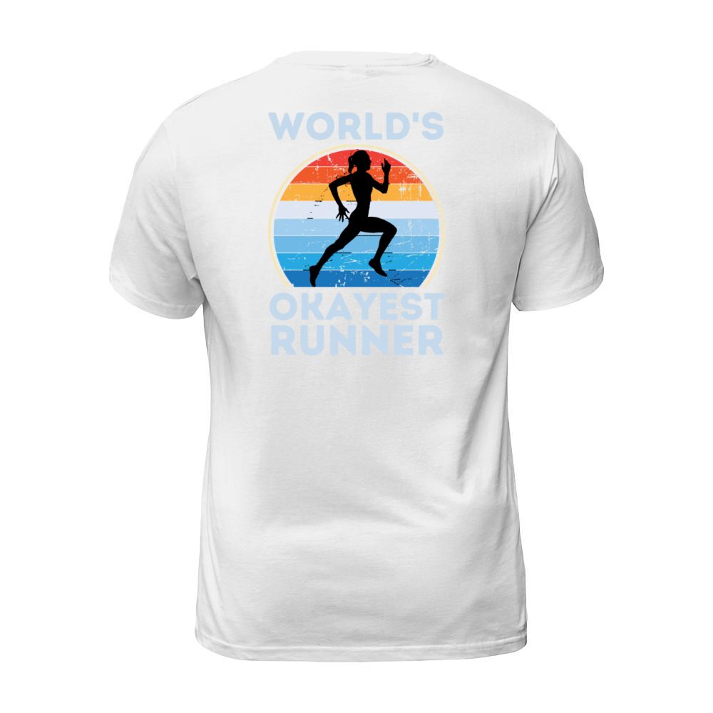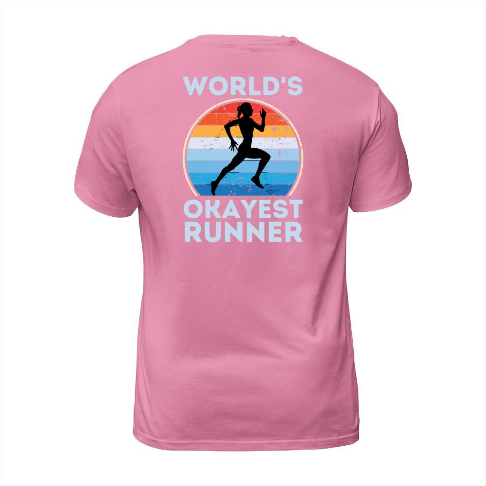 Shop Worlds Okayest Runner Funny Running Woman Saying T-Shirt Unisex custom made just for you. Available on many styles, sizes, and colors.