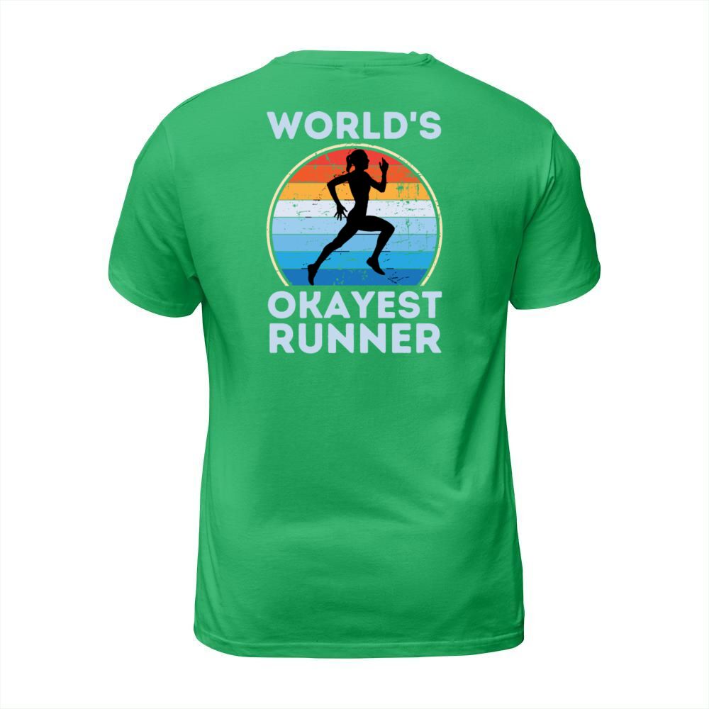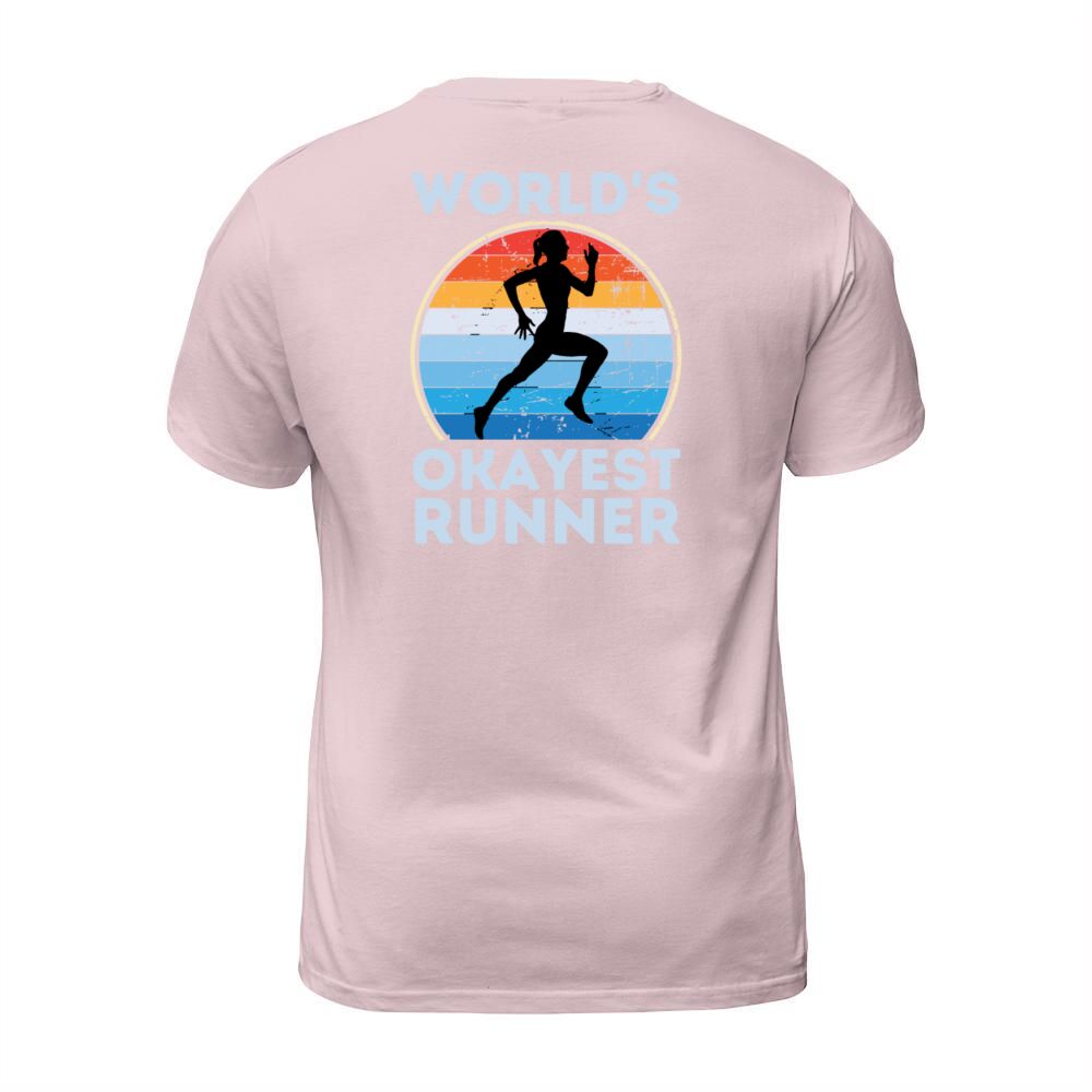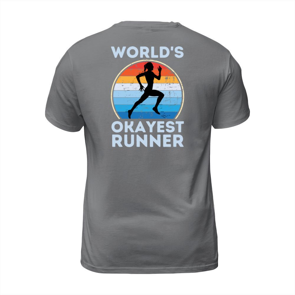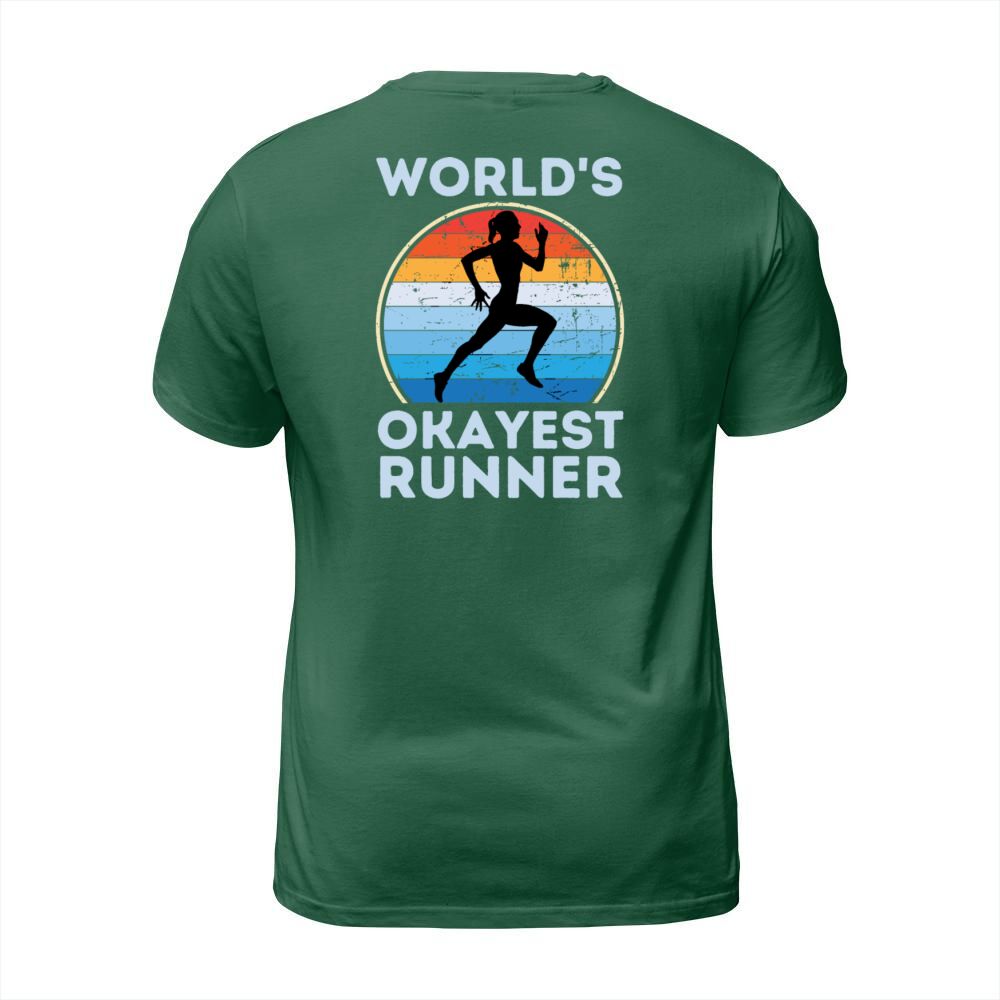Shop Worlds Okayest Runner Funny Running Woman Saying T-Shirt Unisex custom made just for you. Available on many styles, sizes, and colors.