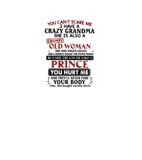 Shop You can’t scare me i have crazy grandma grumpy old woman prince shirt T-Shirt Unisex custom made just for you. Available on many styles, sizes, and colors.