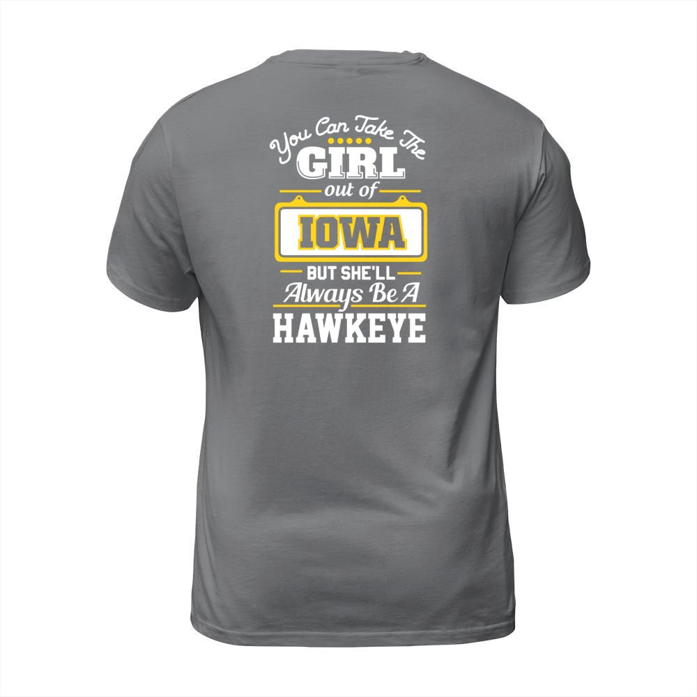 Shop You Can Take The Girl Out Of IOWA But Shell Always Be A Hawkeye T-Shirt Unisex custom made just for you. Available on many styles, sizes, and colors.